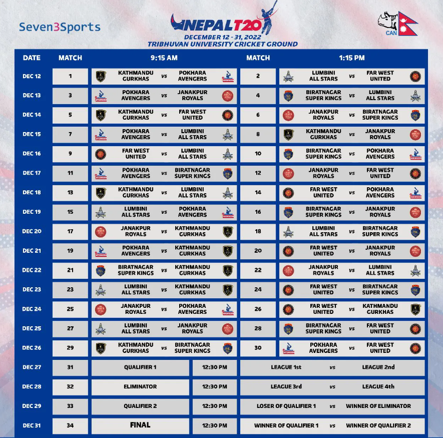 | 2 | Dec 12, 2022 | 01:15 PM | Lumbini All Star vs Far Western United |